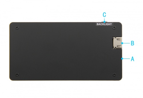 C: 按键,调节背光亮度;按1下,亮度递增10%,到达100%后再回到10%;长按3秒,关闭背光,10秒内按1下亮度递增10%,10秒后,按1下恢复原来亮度