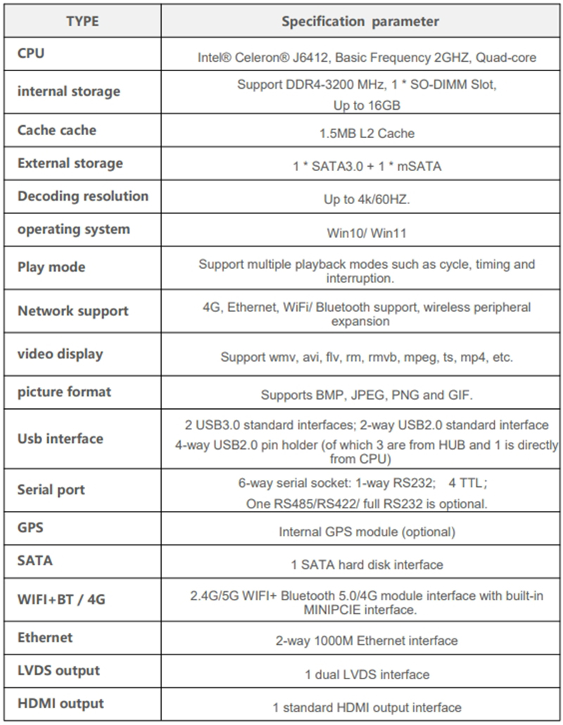 | CPU | Intel® Celeron® J6412, Basic Frequency 2GHZ, Quad |