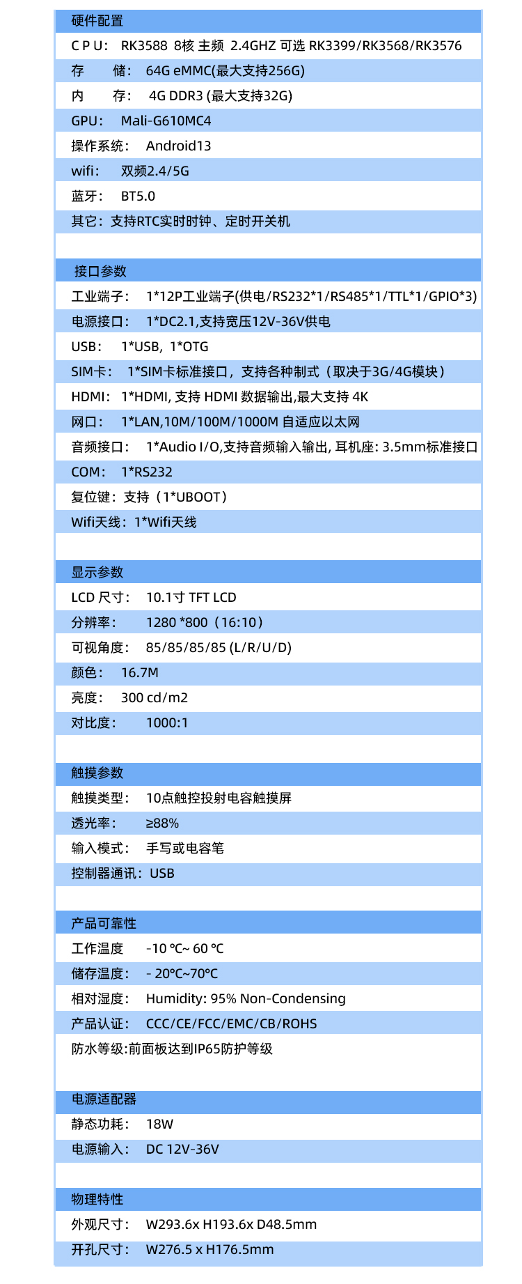 | 存储 | 64G eMMC(最大支持256G) |