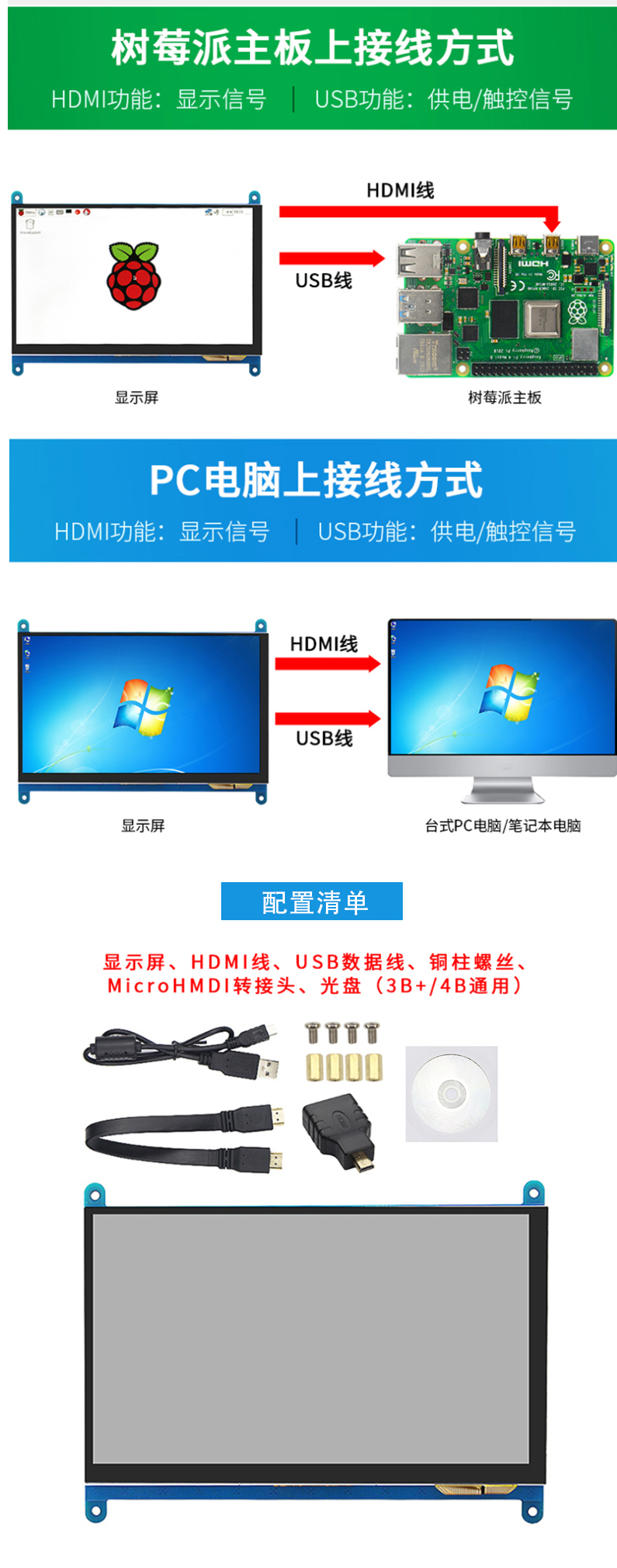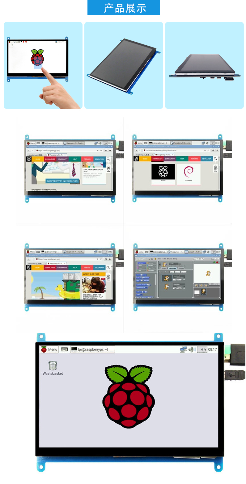 树莓派1.44/2.8/3.5/5.0/7寸/10.1寸电容触控显示屏HDMI接口IPS屏
