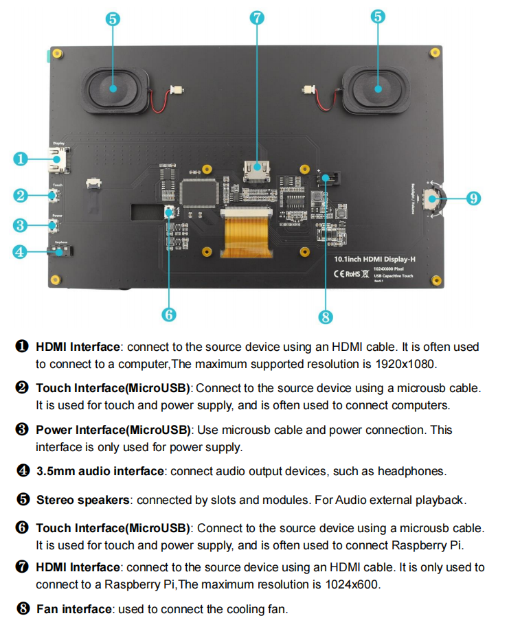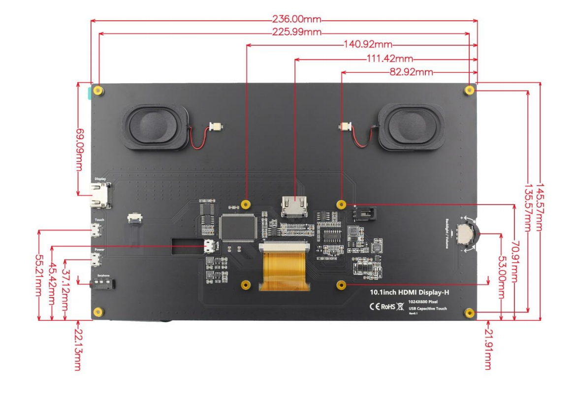 10.1寸IPS触摸显示器1024*600 HDMI接口带立体声扬声器