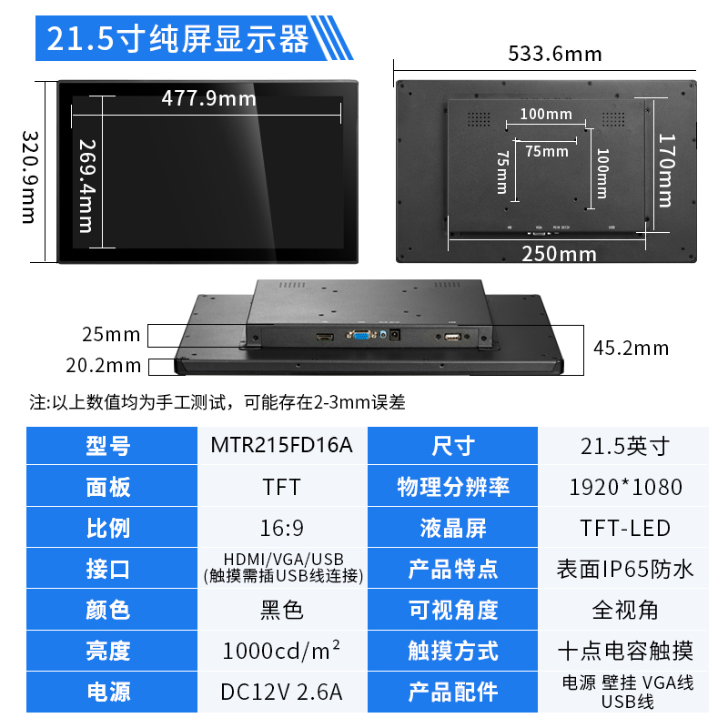 21.5寸工业触摸显示器1920*1080IPS屏HDMI接口1000亮度触摸显示器