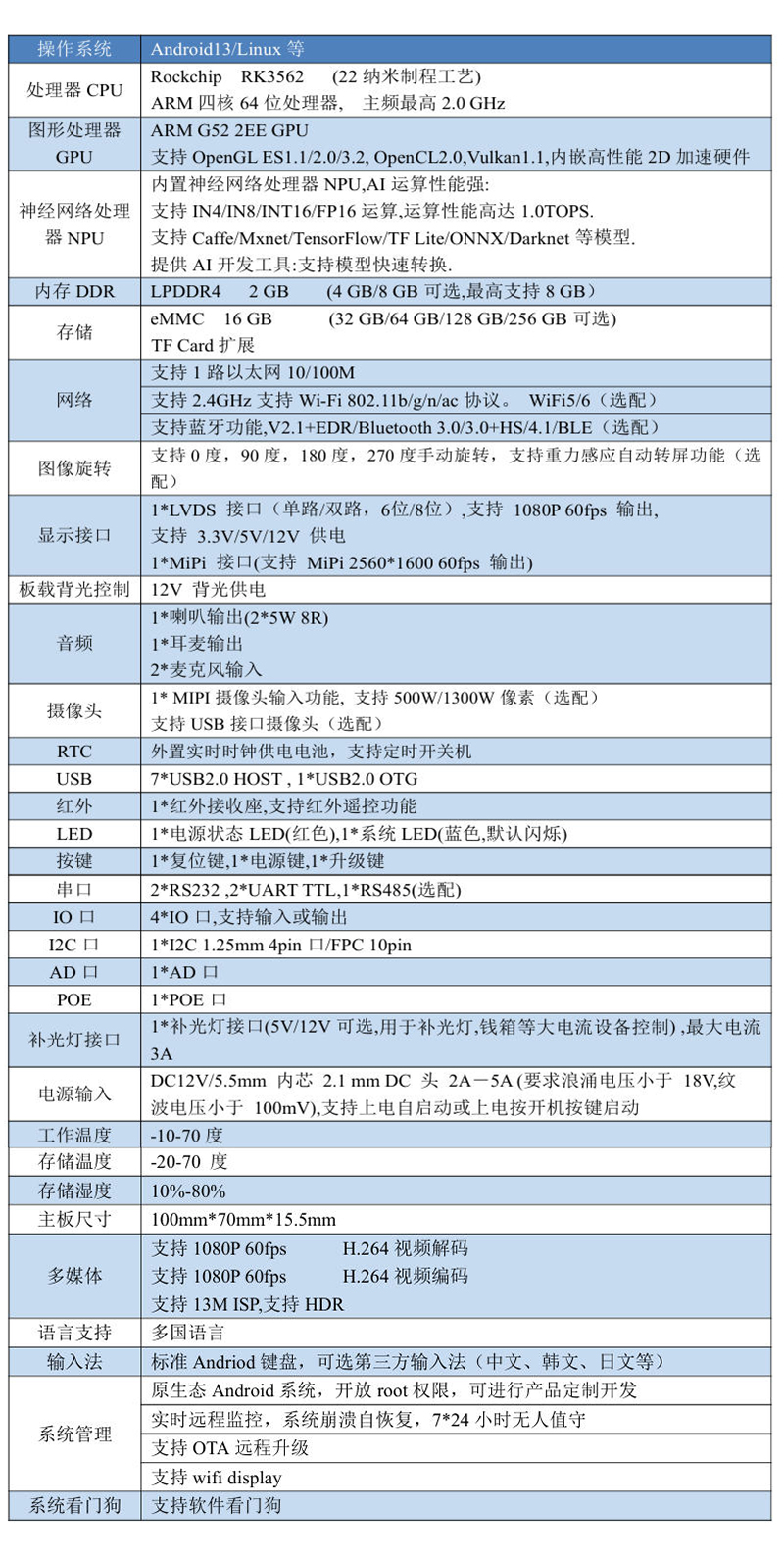 | 存储 | eMMC 16GB (32 GB/64 GB/128 GB/256 GB 可选) |